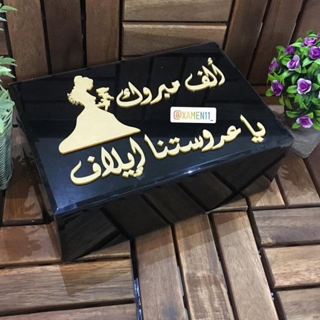 صندوق هدايا مع كتابة داخليه وخارجيه مباخر بالاسم