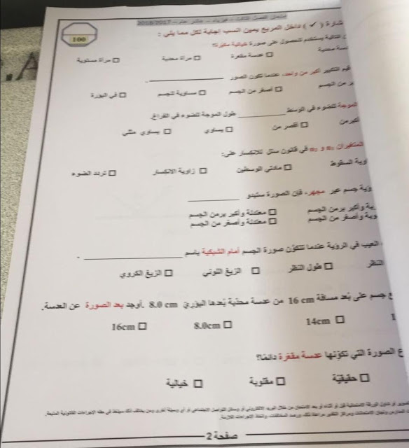 عاجل تسريب أسئلة وإجابات امتحان الفيزياء التجريبيي للصف الأول الثانوي صور